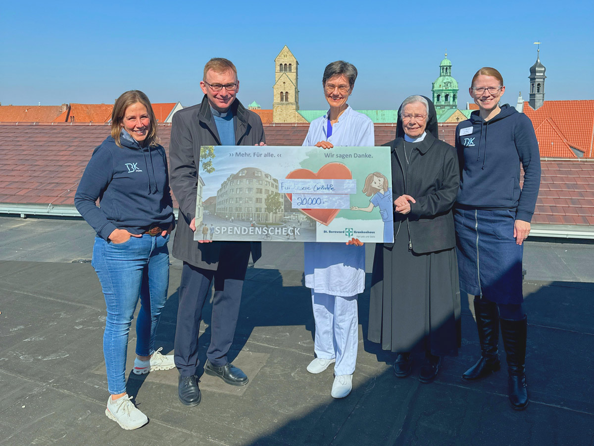 "Unsere Bauvorhaben – insbesondere der Neubau – bedeuten für uns enorme, auch finanzielle Kraftanstrengungen. Ein großer Teil der anfallenden Kosten ist finanziert. Leider können aber nicht alle Projekte, die wir gern umsetzen möchten, gefördert werden. Deshalb hoffen wir auf die wirkungsvolle Unterstützung von Unternehmen, Stiftungen und Privatpersonen, um genau diese besonderen „i-Tüpfelchen“ zu realisieren." – Karen Thiele, Geschäftsführerin St. Bernward Krankenhaus